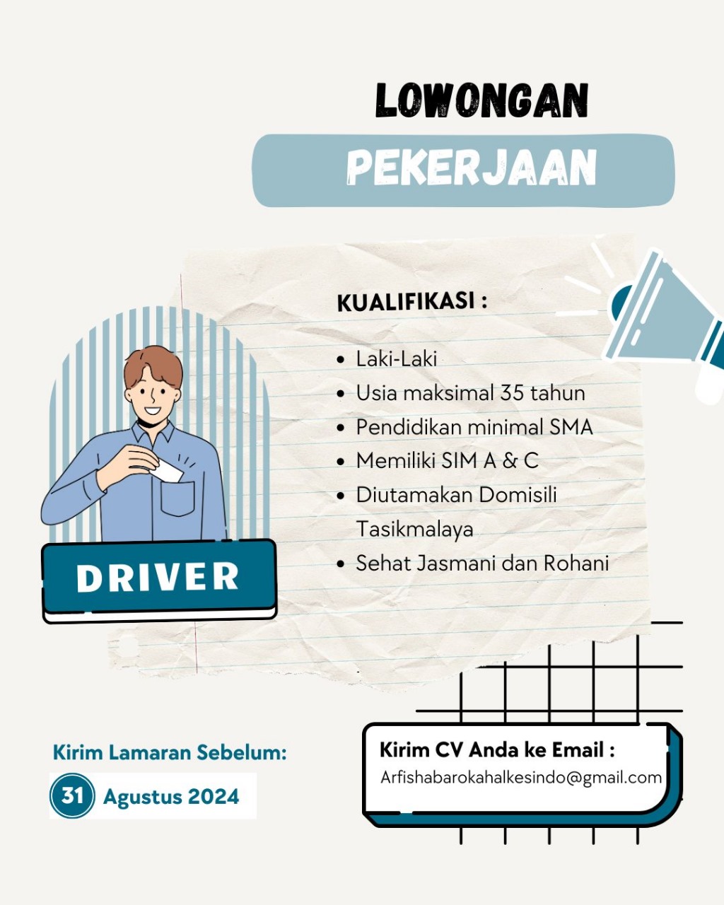 Lokertasikmalaya.ID – Update Info lowongan Kerja 24 Juli 2024, Lowongan Kerja CV. Arfisha Barokah Alkesindo