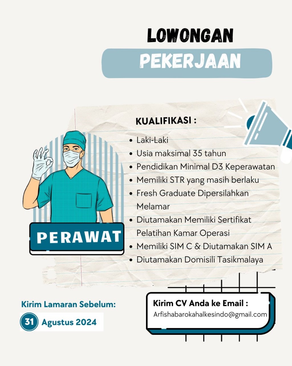 • Diutamakan Memiliki Sertifikat Pelatihan Kamar Operasi
