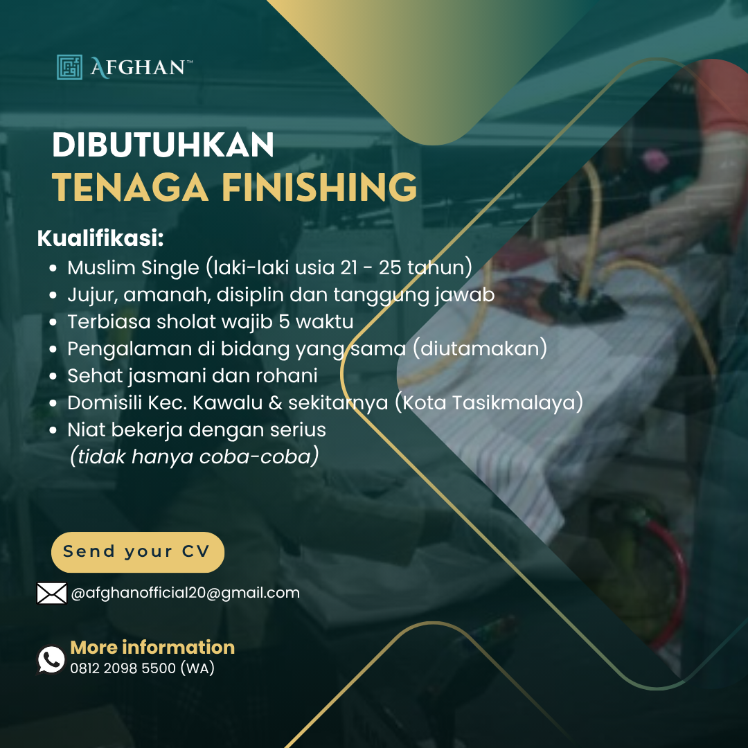 Lokertasikmalaya.ID – Update Info lowongan Kerja 21 Juli 2025, Lowongan Kerja Tenaga Finishing di Afghan Official