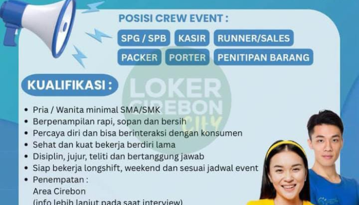 Bagi Anda yang memiliki semangat tinggi, komunikatif, dan ingin menambah portofolio di industri event organizer, lowongan ini adalah kesempatan emas yang tidak boleh dilewatkan. Mari simak detail kualifikasi dan cara melamarnya di bawah ini.
