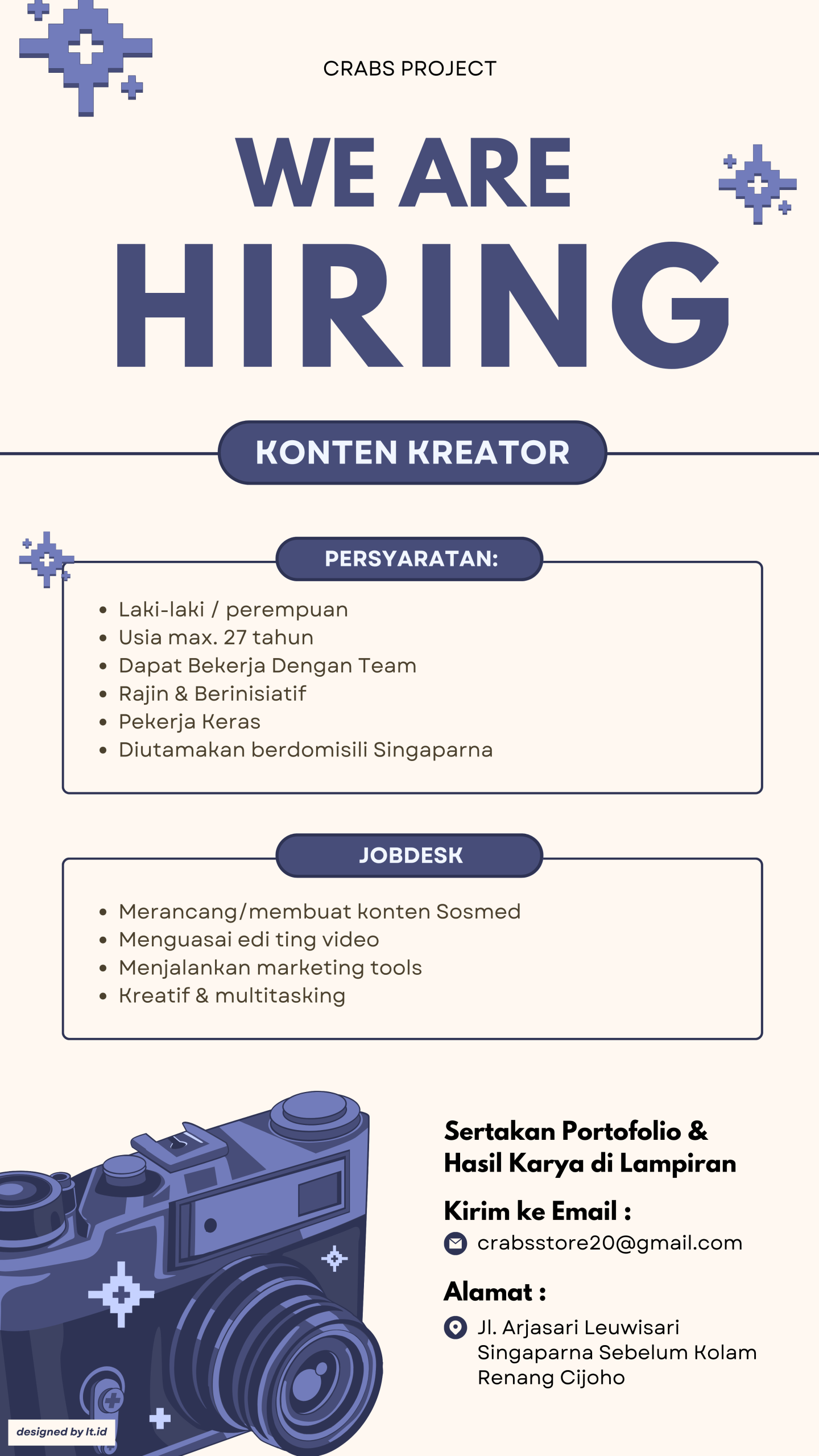 Lokertasikmalaya.ID – Update Info lowongan Kerja 13 Mei 2025 Lowongan Kerja Crabs Project