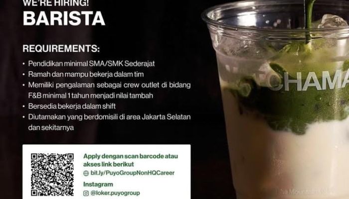 Fresh Graduate SMA/SMK Merapat! Lowongan Barista Matchaman (Puyo Group) Dibutuhkan Segera