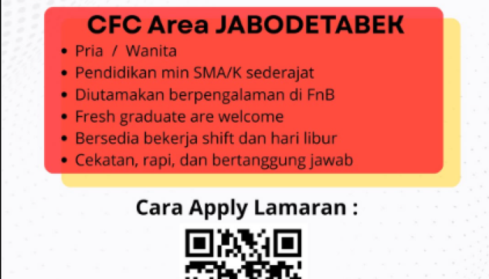 Apakah kamu pribadi yang aktif, rapi, dan sedang mencari peluang karier di dunia kuliner? PT Pioneerindo Gourmet International Tbk (CFC) kembali membuka kesempatan emas bagi kamu untuk bergabung sebagai Crew Store untuk wilayah JABODETABEK.