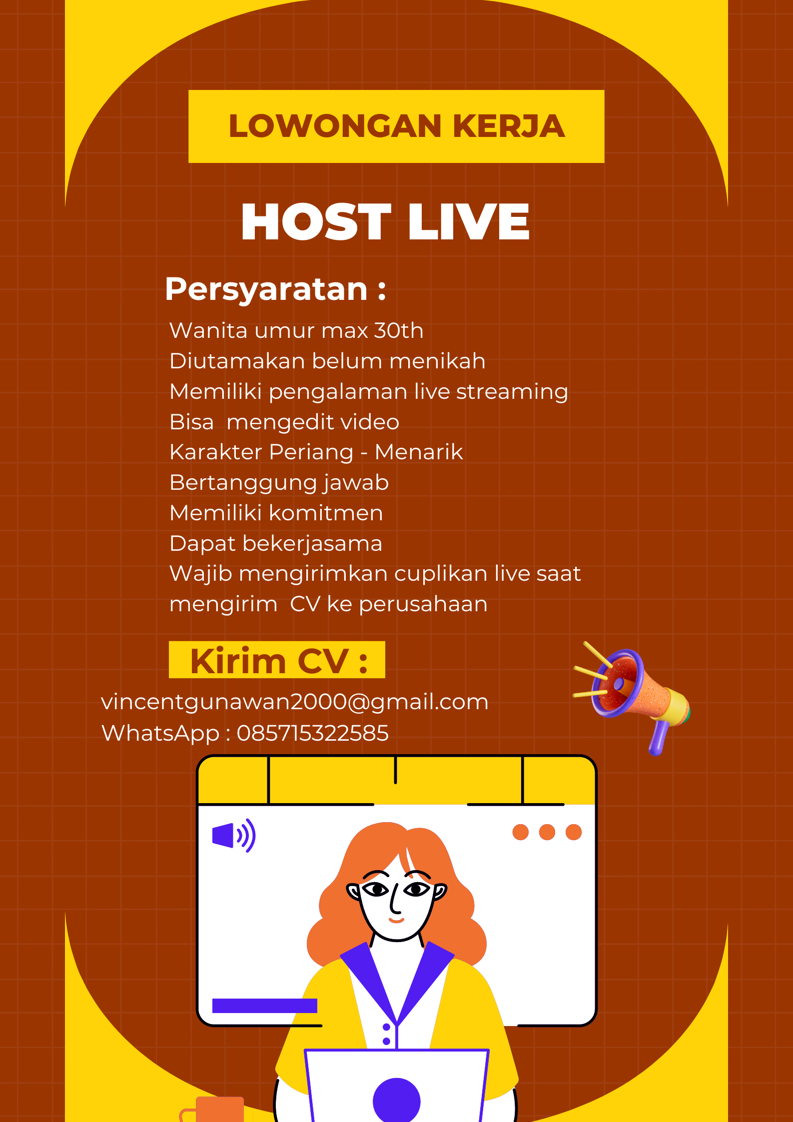 Lokertasikmalaya.ID – Update Info lowongan Kerja 16 Agustus 2024, Lowongan Kerja Host Live Streaming