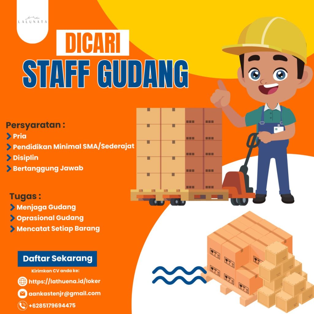 Lalunata juga membuka peluang kerja untuk posisi Staff Gudang bagi kandidat yang disiplin dan bertanggung jawab. Jika Anda memiliki latar belakang pendidikan minimal SMA dan mampu bekerja dengan baik dalam operasional gudang, posisi ini bisa menjadi pilihan yang tepat.