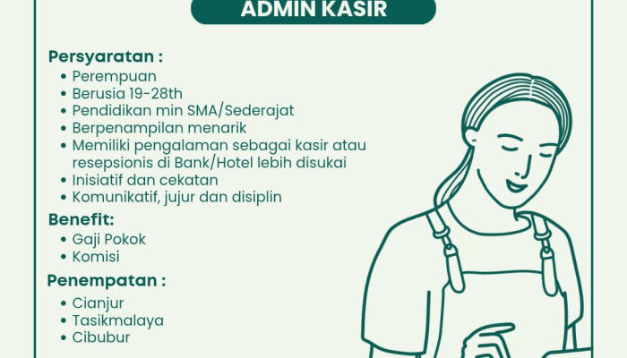 • Pengalaman: Diutamakan memiliki pengalaman sebagai kasir atau resepsionis di Bank/Hotel.