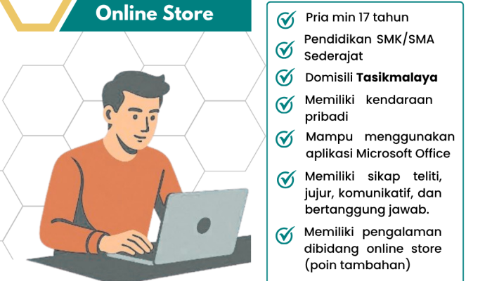 - Pengalaman: Diutamakan memiliki pengalaman di bidang online store (misalnya sebagai admin marketplace atau customer service toko online).