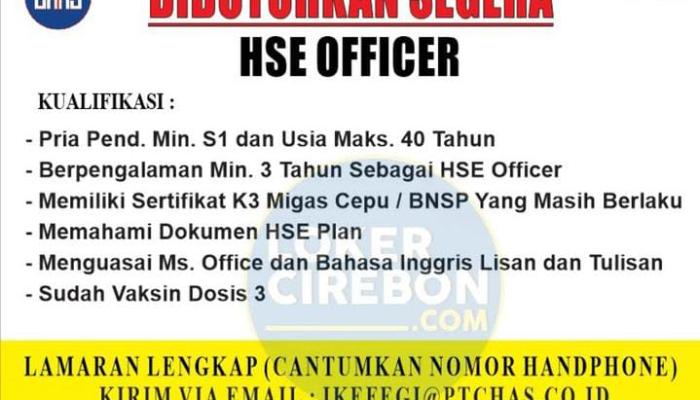 - Berpengalaman minimal 3 Tahun sebagai HSE Officer.