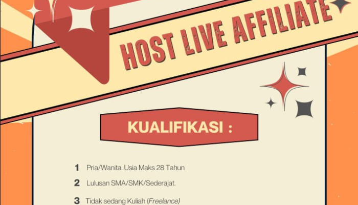 Apakah Anda seorang pria atau wanita yang suka tampil di depan kamera? Ingin berkarir sebagai Host Live dan mendapatkan penghasilan dari komisi penjualan? Jika ya, lowongan kerja Host Live Affiliate dari CV. Zafran ini adalah kesempatan emas untuk Anda!