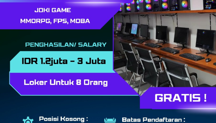 - IDR 1.2 Juta – 3 Juta (Gaji disesuaikan berdasarkan kinerja, skill level, jam kerja, dan target yang dicapai, mencakup performance sebagai joki, streamer, dan content creator).