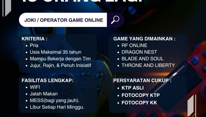Untuk melamar posisi Joki / Operator Game Online ini, pastikan Anda memenuhi kriteria berikut: