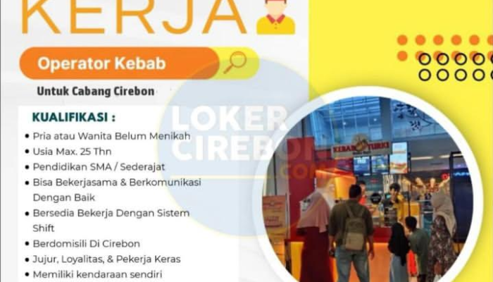 Lokerterbaru.id – Apakah Anda sedang mencari peluang kerja di bidang kuliner cepat saji? Kebab Turki Baba Rafi, jaringan kebab terbesar di dunia, saat ini sedang membuka lowongan kerja untuk posisi Operator Kebab di cabang Cirebon.