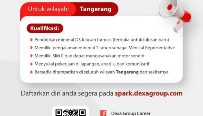 Apakah Anda lulusan D3 Farmasi yang energik, komunikatif, dan siap berkarir di lapangan? Ingin menjadi bagian dari perusahaan farmasi terkemuka di Indonesia? Dexa Group, salah satu kelompok usaha farmasi terbesar, membuka kesempatan emas bagi Anda untuk bergabung sebagai Medical Representative (MR) di wilayah Tangerang dan sekitarnya.