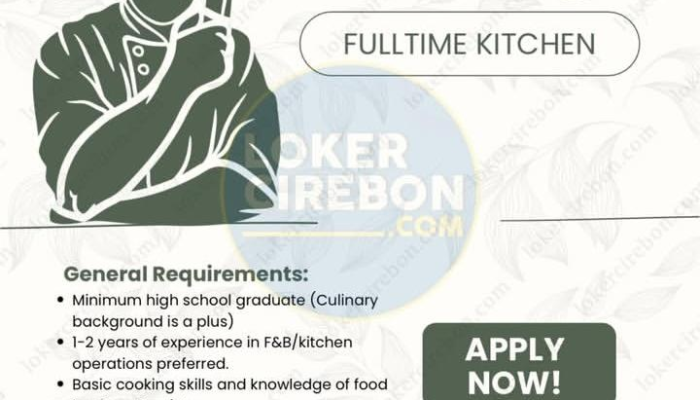 • Pengalaman: Diutamakan memiliki pengalaman 1-2 tahun di bidang F&B atau operasional dapur.