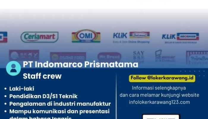 Loker Staff Crew PT Indomarco Prismatama Group untuk Penempatan Bekasi Terbaru 2025