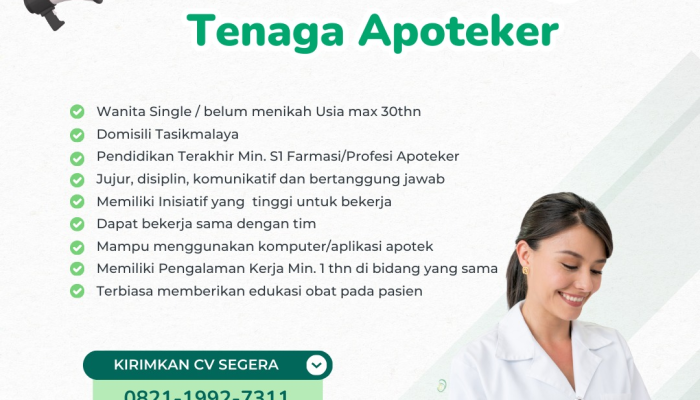 - Pendidikan terakhir minimal S1 Farmasi / Profesi Apoteker.