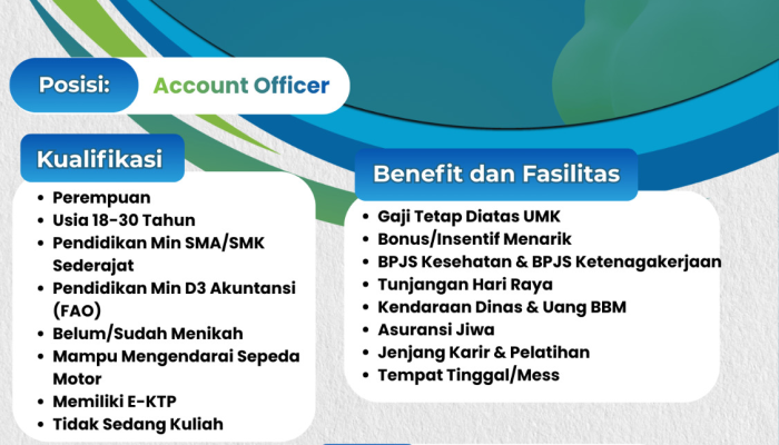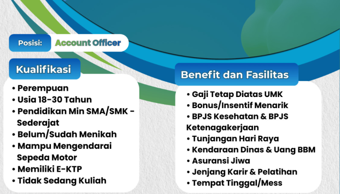 - Pendidikan: * Minimal SMA/SMK/Sederajat (untuk posisi AO).