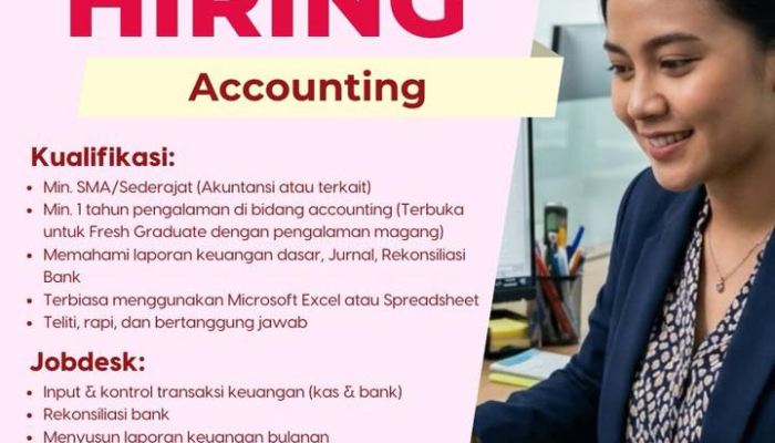 - Pendidikan minimal SMA/Sederajat (Akuntansi atau bidang terkait).
