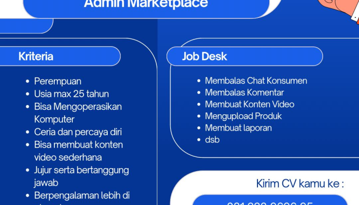 Apakah Anda seorang wanita yang mahir mengelola toko online dan kreatif dalam membuat konten? Andvi Store sedang membuka kesempatan karir bagi Anda untuk bergabung sebagai Admin Marketplace.