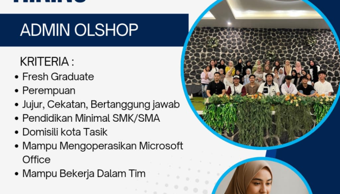 Anda seorang fresh graduate yang jujur, cekatan, dan berdomisili di Kota Tasik? Ingin memulai karir di dunia e-commerce dan pemasaran digital? Gaspoldigital membuka kesempatan bagi Anda untuk bergabung sebagai Admin Olshop! Posisi ini sangat cocok bagi Anda yang memiliki keterampilan administrasi dasar (Microsoft Office) dan semangat kerja tim yang tinggi, dengan jaminan gaji pokok dan bonus target. Segera simak detail lengkapnya!