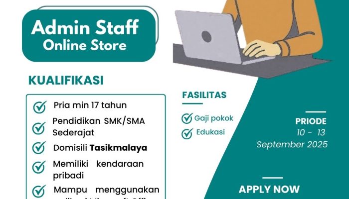 Apakah Anda seorang pria yang teliti, jujur, dan memiliki ketertarikan di dunia bisnis online? TerraTure sedang membuka kesempatan emas bagi Anda untuk bergabung sebagai Admin Staff Online Store. Jika Anda berdomisili di Tasikmalaya dan siap berkontribusi dalam mengelola operasional toko online, ini adalah peluang yang tidak boleh dilewatkan.