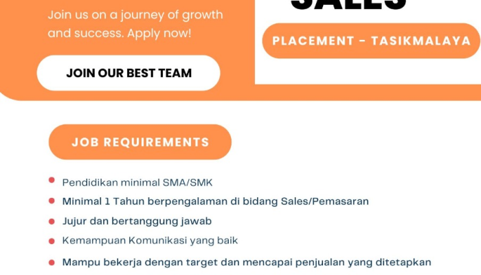 Apakah Anda memiliki pengalaman minimal 1 tahun di bidang penjualan, menguasai wilayah Tasikmalaya, dan ingin berkarir di industri makanan yang stabil dan berkembang? Jika iya, kami mengajak Anda untuk bergabung!