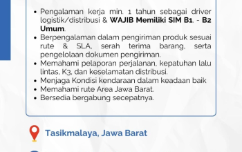 lokertasikmalaya.id adalah situs tentang lowongan kerja di daerah Tasikmalaya, Ciamis, Banjar, Garut, Pangandaran, dan juga lowongan kerja nasional, kami mendapatkan sumber dengan valid dan terpercaya dari HRD HRD perusahan.