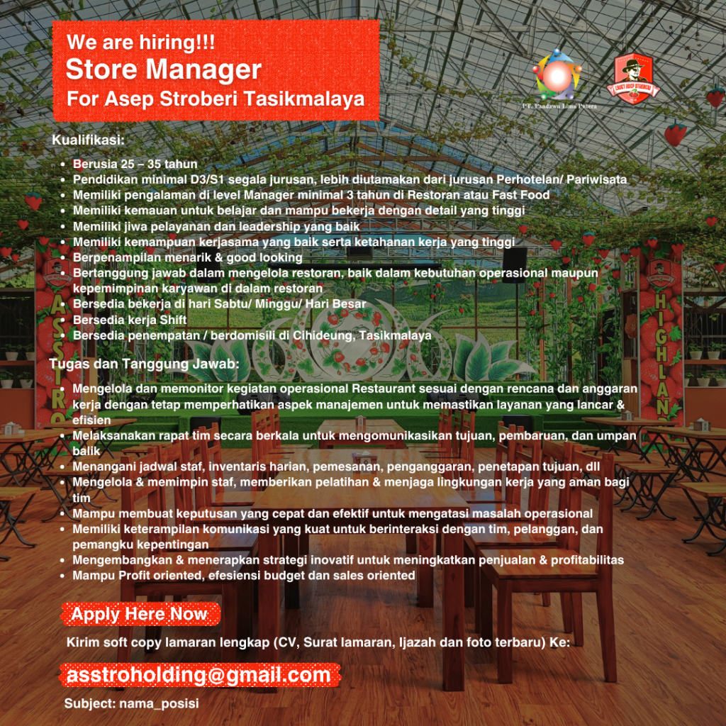 Lokertasikmalaya.ID – Update Info lowongan Kerja 20 November 2024, Lowongan Kerja Asep Stroberi Tasikmalaya