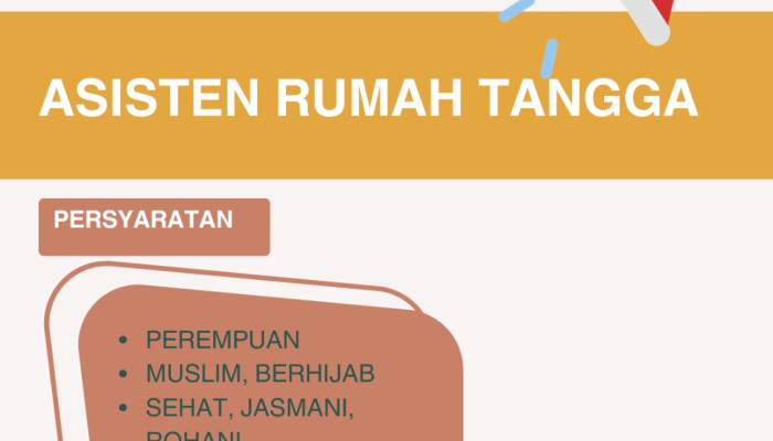 Apakah Anda sedang mencari pekerjaan sebagai Asisten Rumah Tangga dengan lingkungan kerja yang nyaman dan aman? Saat ini, sedang dibutuhkan segera tenaga kerja yang jujur, disiplin, dan berpengalaman untuk mengisi posisi Asisten Rumah Tangga (ART) di wilayah Rajapolah, Tasikmalaya. Kami mengundang Anda yang memenuhi kriteria untuk segera bergabung dan menjadi bagian dari keluarga kami. Simak persyaratan lengkapnya di bawah ini!