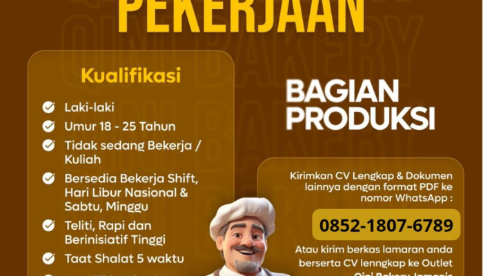 Apakah Anda seorang pria yang teliti, rajin, dan memiliki inisiatif tinggi untuk bekerja di industri bakery? Qini Bakery, salah satu toko roti favorit di Tasikmalaya, membuka kesempatan emas bagi Anda untuk bergabung sebagai Bagian Produksi. Posisi ini sangat cocok bagi Anda yang mencari pekerjaan yang stabil dan ingin berkontribusi langsung dalam menghasilkan produk roti berkualitas. Jika Anda bersemangat untuk memulai karir di bidang produksi pangan dan memenuhi kriteria yang ada, simak detail loker Qini Bakery Jamanis terbaru ini!