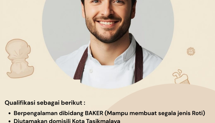 Apakah Anda seorang baker berpengalaman yang memiliki passion dalam membuat berbagai jenis roti? Kami sedang mencari individu berbakat untuk bergabung dengan tim kami sebagai Baker. Ini adalah kesempatan emas bagi Anda yang berdomisili di Kota Tasikmalaya dan siap bekerja di bawah tekanan untuk mencapai target.