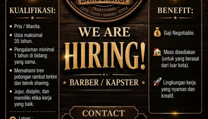 Segera daftarkan diri Anda! Proses seleksi akan terus berjalan hingga posisi Barber terpenuhi.