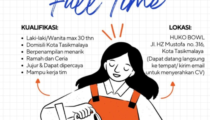 - Datang Langsung (Walk-in): Anda juga dapat menyerahkan CV langsung ke lokasi kerja di: HUKO BOWL / HUKO CAFE Jl. HZ Mustofa No. 316, Kota Tasikmalaya.