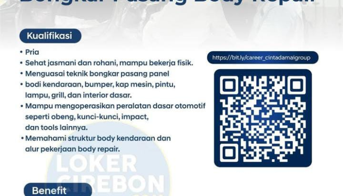 Apakah Anda seorang Pria yang mahir dalam teknik bongkar pasang panel bodi kendaraan, menguasai peralatan dasar otomotif, dan mencari pekerjaan stabil di industri otomotif?