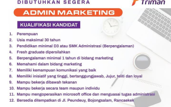 Simpan dan bookmark alamat lokertasikmalaya.id untuk mendapatkan loker terbaru dan terupdate setiap harinya.