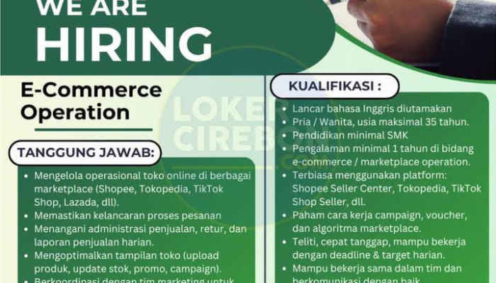 2. Lowongan E-Commerce Operation – Cirebon