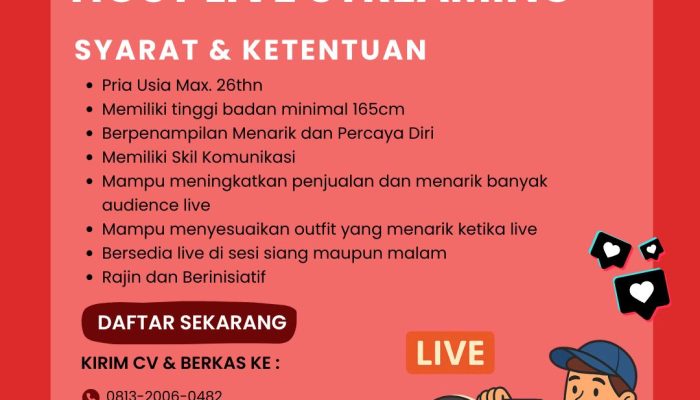 Sebagai Host Live Streaming, Anda akan menjadi wajah perusahaan dalam sesi siaran langsung. Tanggung jawab utama meliputi: