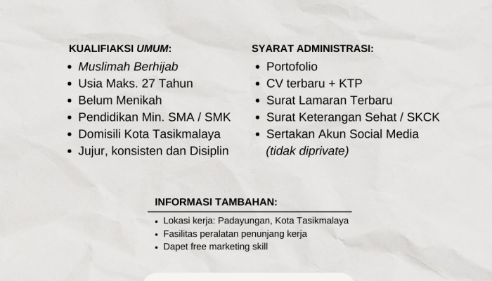 Apakah kamu seorang kreator muda dengan ide-ide brilian yang ingin berkontribusi dalam tim yang dinamis? Karsa sedang mencari Content Creator berbakat untuk bergabung! Jika kamu punya passion di dunia konten, suka berinteraksi di media sosial, dan ingin mengembangkan karier di industri fashion muslim, kesempatan ini tidak boleh dilewatkan. Baca terus untuk mengetahui detail lengkapnya dan segera kirimkan lamaranmu.