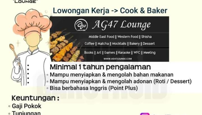 Lowongan Kerja Cook & Baker di AG47 Lounge: Peluang Karir Kuliner Terbaru