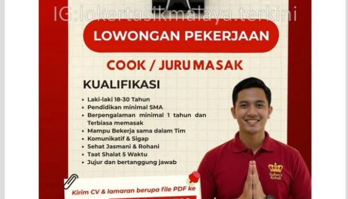 Lowongan ini menjadi salah satu loker terbaru Tasikmalaya 2025 yang patut dipertimbangkan, khususnya bagi Anda yang memiliki keterampilan memasak dan tanggung jawab kerja yang tinggi.