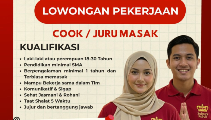 Apakah Anda memiliki passion di dunia kuliner dan sedang mencari peluang karir di Tasikmalaya? Sultan’s Kebuli dan Bakmie Sajamanis sedang membuka lowongan pekerjaan untuk posisi Cook / Juru Masak.