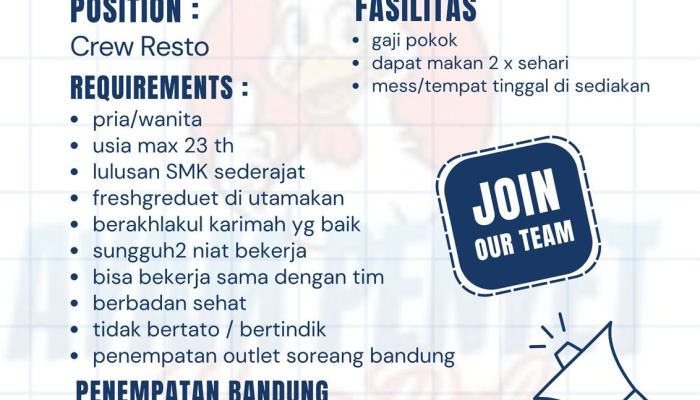 Ayam Penyet Mang Dul sedang membuka kesempatan bagi Anda yang bersemangat untuk bergabung sebagai Crew Outlet dengan penempatan di Bandung.