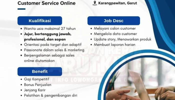 Apakah Anda seorang wanita yang komunikatif, memiliki passion di bidang penjualan, dan berdomisili di Garut? Jauzaa Herbal, salah satu unit bisnis yang sedang berkembang, sedang mencari talenta berdedikasi untuk bergabung sebagai Customer Service Online.