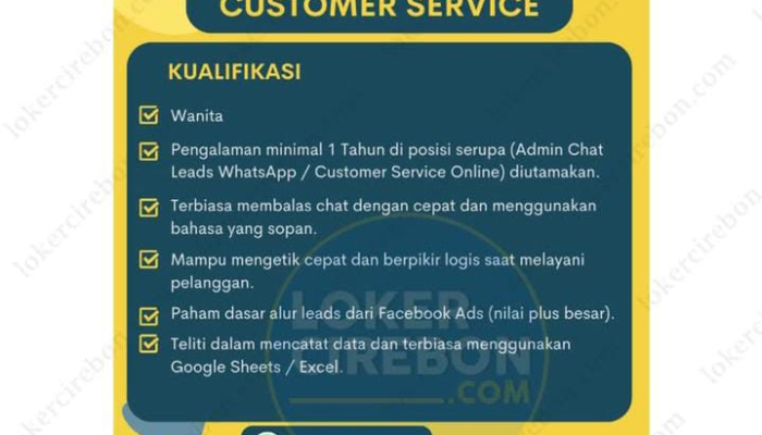 • Pengalaman minimal 1 tahun di posisi serupa (Admin Chat WhatsApp, Customer Service Online, atau Admin Leads).