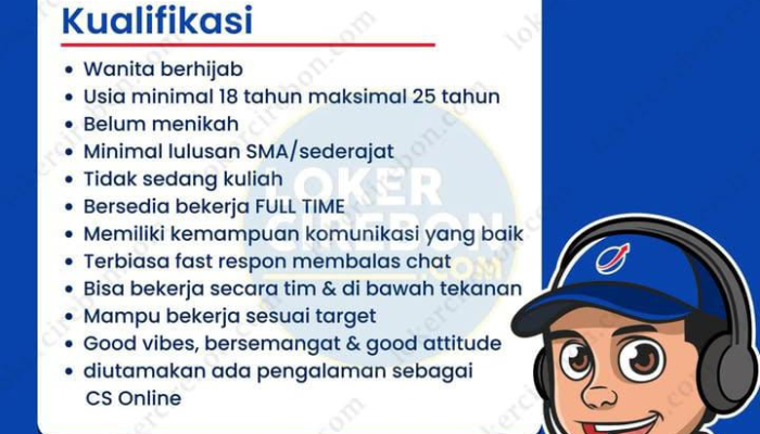 - Pengalaman: Diutamakan memiliki pengalaman sebagai Customer Service (CS) Online.