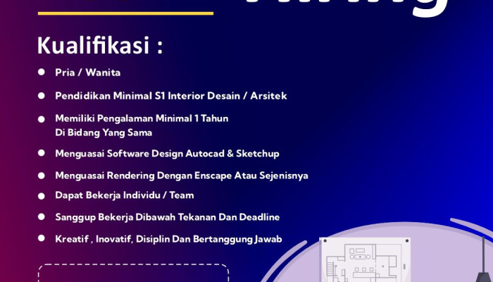 - Pendidikan: Minimal S1 Interior Desain atau Arsitek.