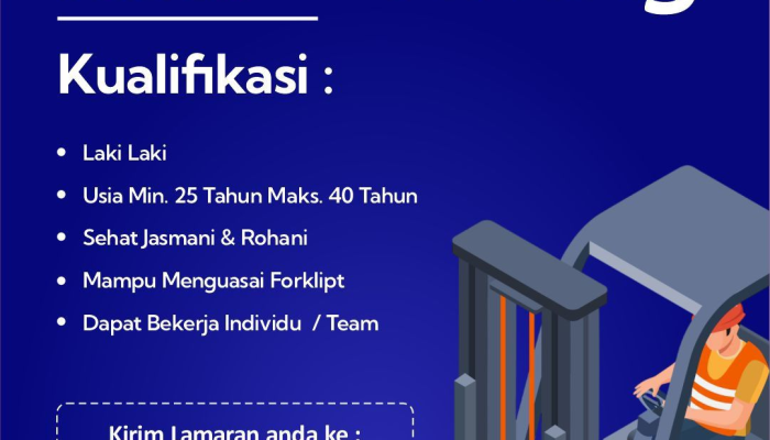- Forklift Driver & Helper: Kirimkan lamaran atau Foto KTP Anda melalui WhatsApp ke nomor 0821-2916-8881.