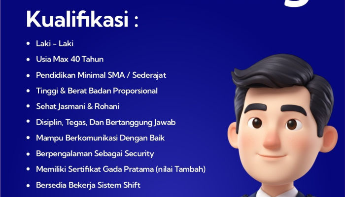 • Laki-laki, usia maksimal 40 tahun, dengan pendidikan minimal SMA/Sederajat.