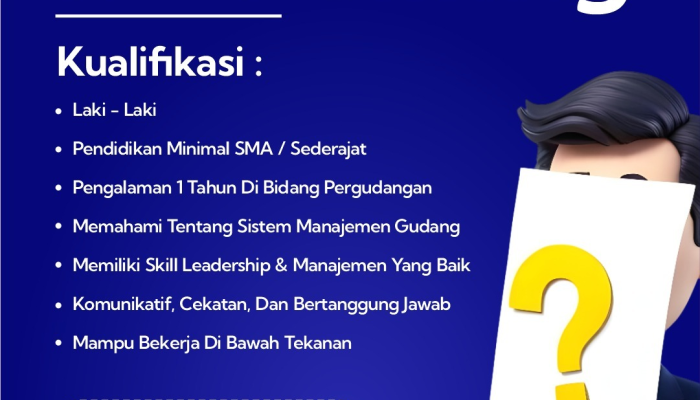 • Memahami sistem manajemen gudang serta memiliki jiwa kepemimpinan (leadership) yang baik.