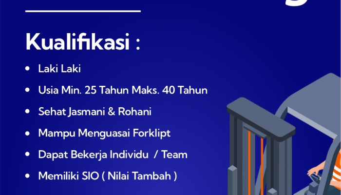 • Forklift Driver: Laki-laki, usia 25–40 tahun, mampu mengoperasikan forklift, dan diutamakan memiliki SIO.
